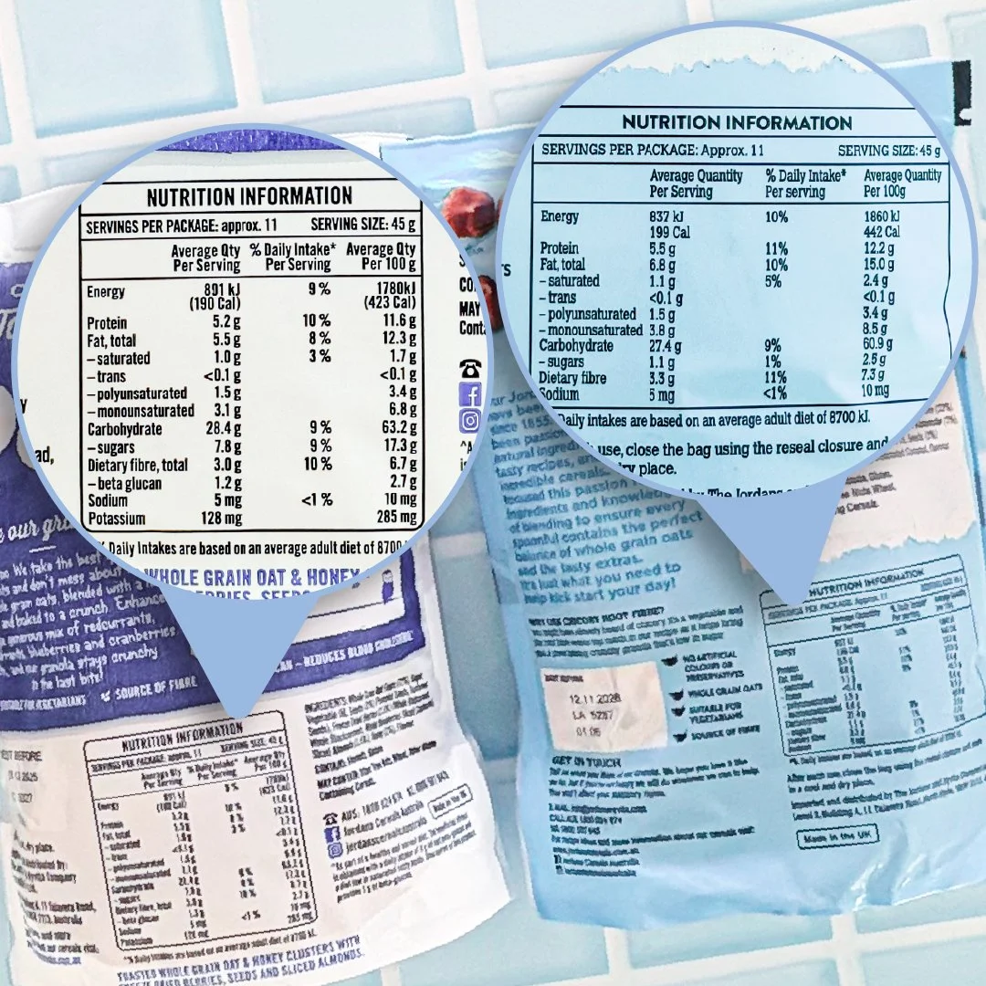 Check the number that matters for your goal - if you're managing calories, check energy. If you're reducing sugar, check sugars. If you're increasing protein, check protein. Don't assume that a product optimised for one metric is automatically better across all of them