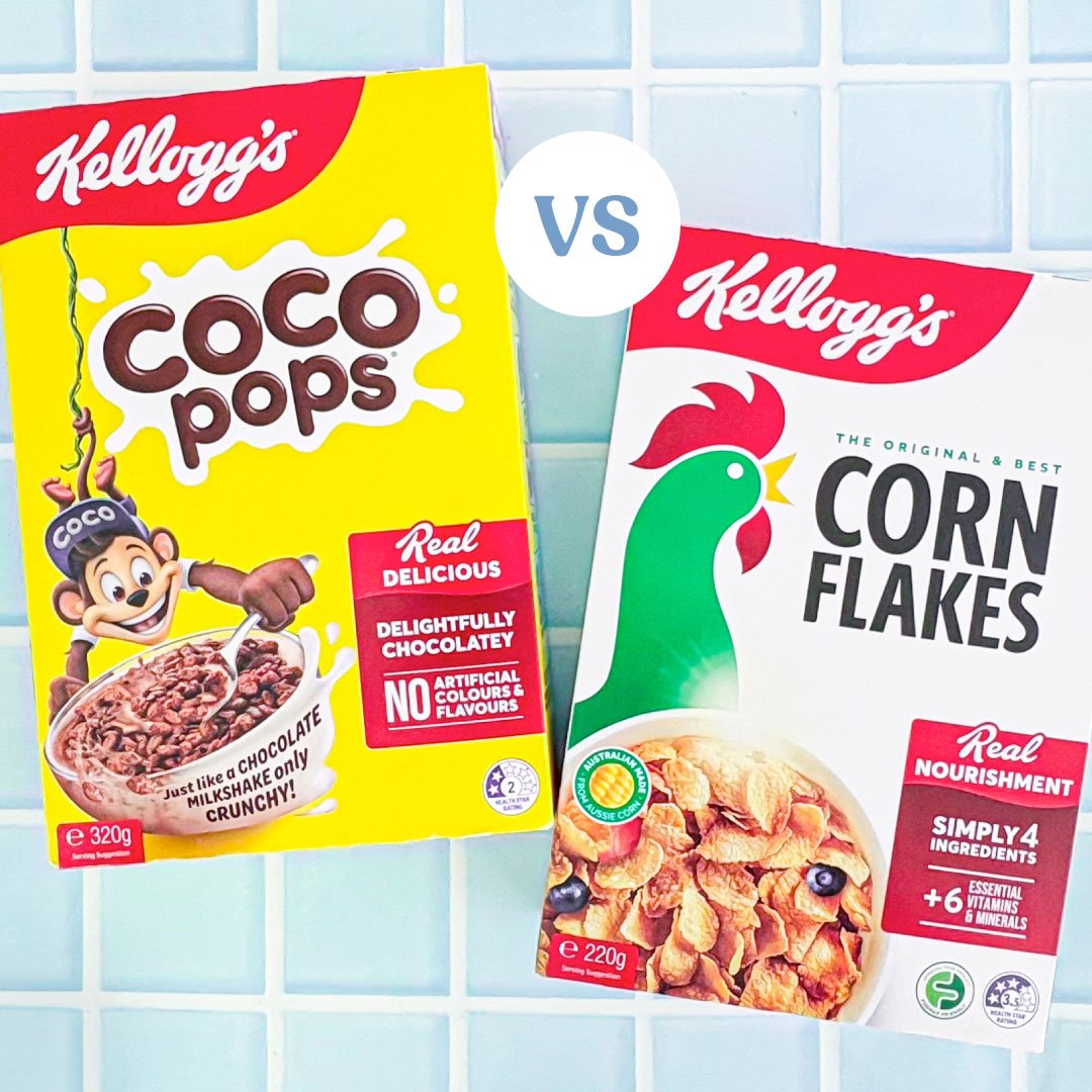 Corn Flakes are widely perceived as the sensible, healthy breakfast choice. Coco Pops are the fun kids' cereal - chocolatey, sweet, obviously a treat.