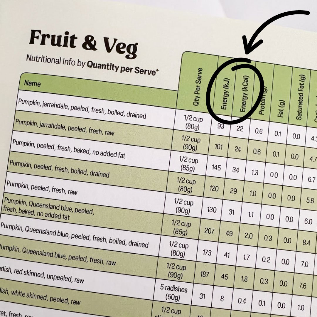 Most people find it easiest to track in kcal since that's what the majority of nutrition content, guides, and references use. In the Australian Calorie & Nutrition Guide, I’ve done the conversion for you, so whether you prefer to track in kJ or cal, you’re covered: